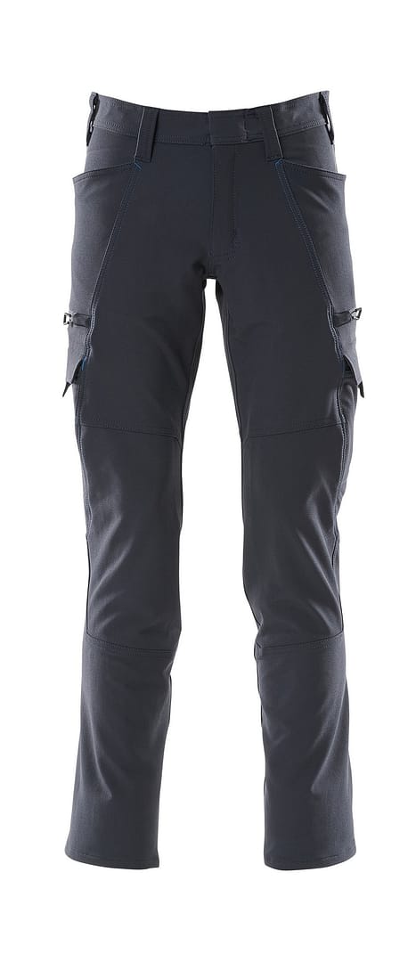 Moderne pasvorm. Zonder kniezakken. Met een waterafstotende finish. Ultimate Stretch-stof met laag gewicht en goede slijtvastheid. Lage taille. Ergonomisch gevormde broekspijpen. Riemlussen. Gulp met rits. Voorzakken. Achterzakken. Dijbeenzak met telefoonzak en klep met verborgen drukknoop en geïntegreerde ID-kaarthouder. Afneembare ID-kaarthouder. Dijbeenzak met duimstokzak. Met opdruk en reflectoren.