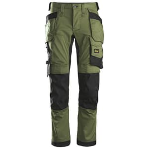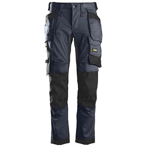 Snickers 6241 AllroundWork werkbroek. Stretch werkbroek met holsterzakken. Multifunctionele werkbroek gemaakt van stretch stof. Deze werkbroek is gemaakt van full-stretch materiaal voor extra flexibiliteit en bewegingsvrijheid, met 4-weg stretch elementen aan de achterkant . De met Cordura versterkte duimstokzak en cargozakken zorgen voor veilige opslag van gereedschap waar je gemakkelijk bij kunt. KneeGuard systeem gecertificeerd volgens EN 14404. Slim fit broekspijpen. 2- en 4-weg stretch materialen. Stretch Cordura bij knieën en kruis. KneeGuard systeem (EN 14404). Cordura zakken. Voorgebogen broekspijpen.