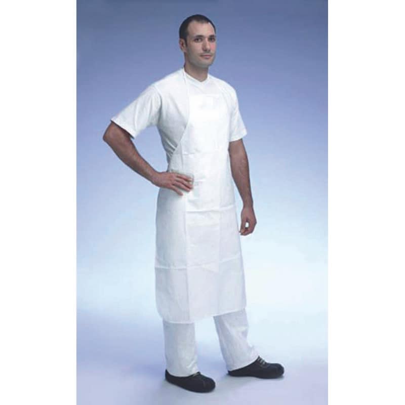 Tyvek 500 PA30LO voorschort. Achteraan voozien van 2 koorden als sluiting. Lengte 108 cm.